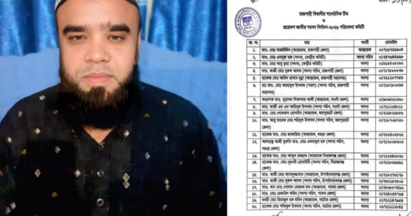 ২০ সদস্য বিশিষ্ট রাজশাহী বিভাগীয় সাংগঠনিক টিম ও ত্রয়োদশ জাতীয় সংসদ নির্বাচন-২০২৬ পরিচালনা কমিটির সদস্য সচিব করা হয়েছে ওলামা দল কেন্দ্রীয় কমিটির সদস্য ও সিরাজগঞ্জ জেলা বিএনপির সহ-দপ্তর সম্পাদক এনামুল হককে।