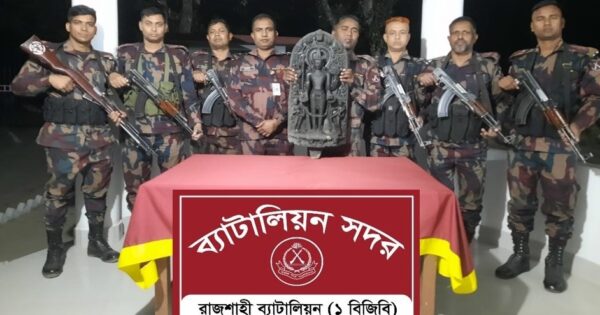 রাজশাহীতে দূর্লভ কষ্টি পাথরের মুর্তি জব্দ করেন বিজিবি